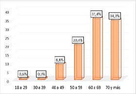 con un 35,4 % y el de 70 años y más con el 34,3 %. Le siguió en orden de frecuencia el grupo de 50 a 59 años con el 20,4%.