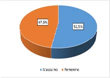 De los pacientes incluidos 95 eran hombres para un 52,5 % y 86 eran mujeres para el 47,5 % restante (gráfico 2). La relación hombre: mujer fue de 1,1: 1.